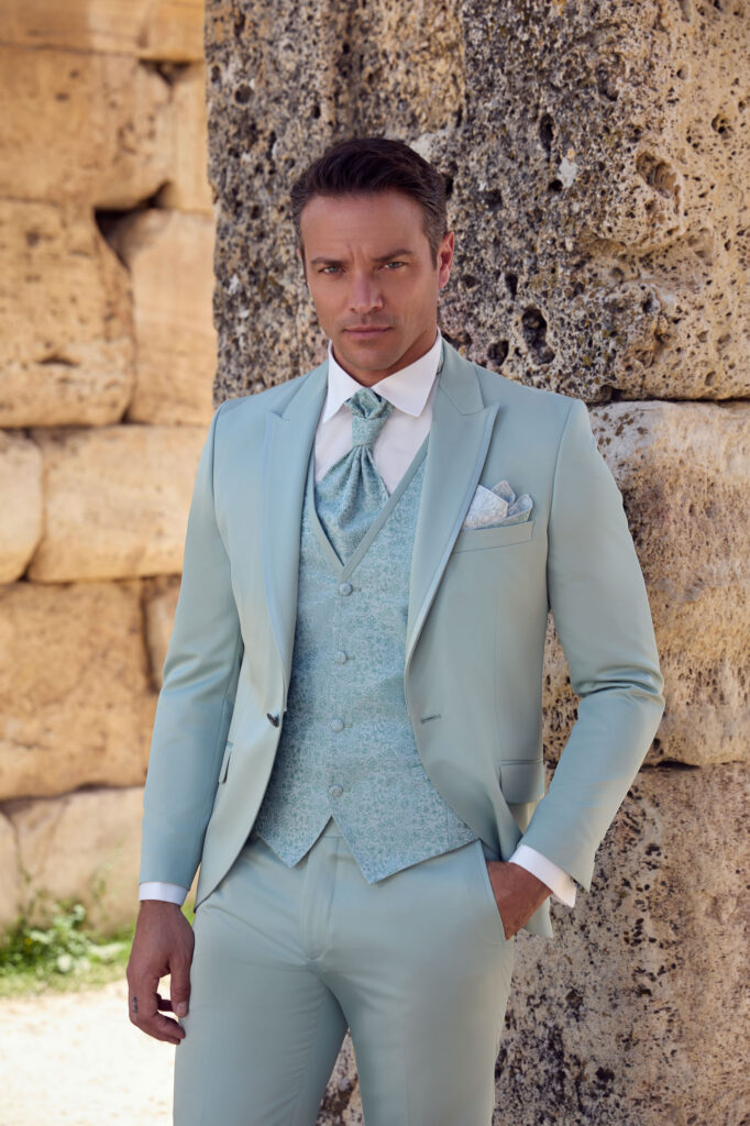 Tziacco ist eine Modelinie der Firma Wilvorst. Diese Linie setzt auf Extravaganz und royales Flair. Mit exklusiven und modischen Stoffen und einem extravaganten Style entstehen royale Modelle und der Mann wird zum Traumprinzen. Ein Anzug von Tziacco ist der perfekte Anzug für eine extravagante Hochzeit. Der Bräutigam möchte neben seiner Braut nicht untergehen, sondern ebenso strahlen wie sie.